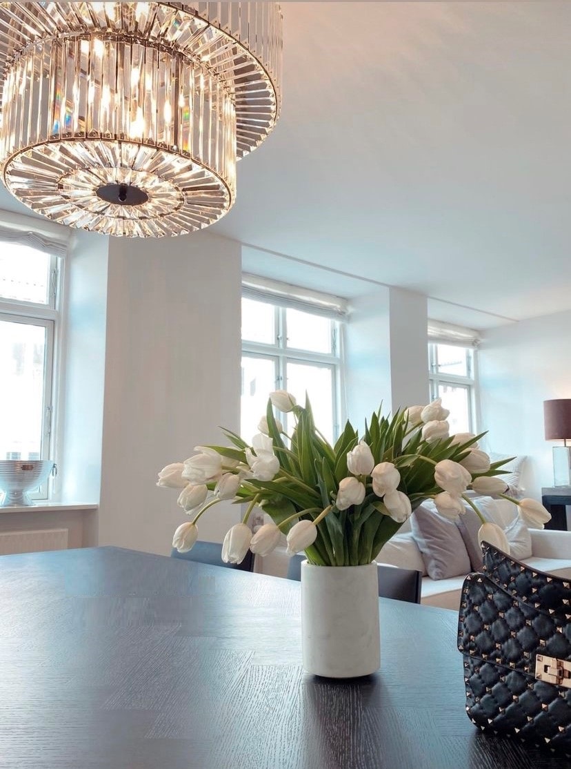 Dana er vores nyeste lysekrone, som er designet med mange rækker af klare krystaller. Lysekronen kommer også med et raffineret lag af krystaller i bunden af kronen med krystaller i flere størrelser, som gør den særdeles ekstraordinær i udtrykket, når den opleves nedefra. Dana giver både volume og højde med dens flotte dimensioner og passer derfor helt perfekt ind i entréen, dagligstuen eller over et spisebord.